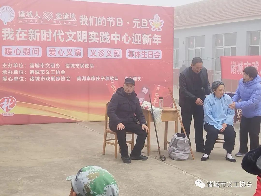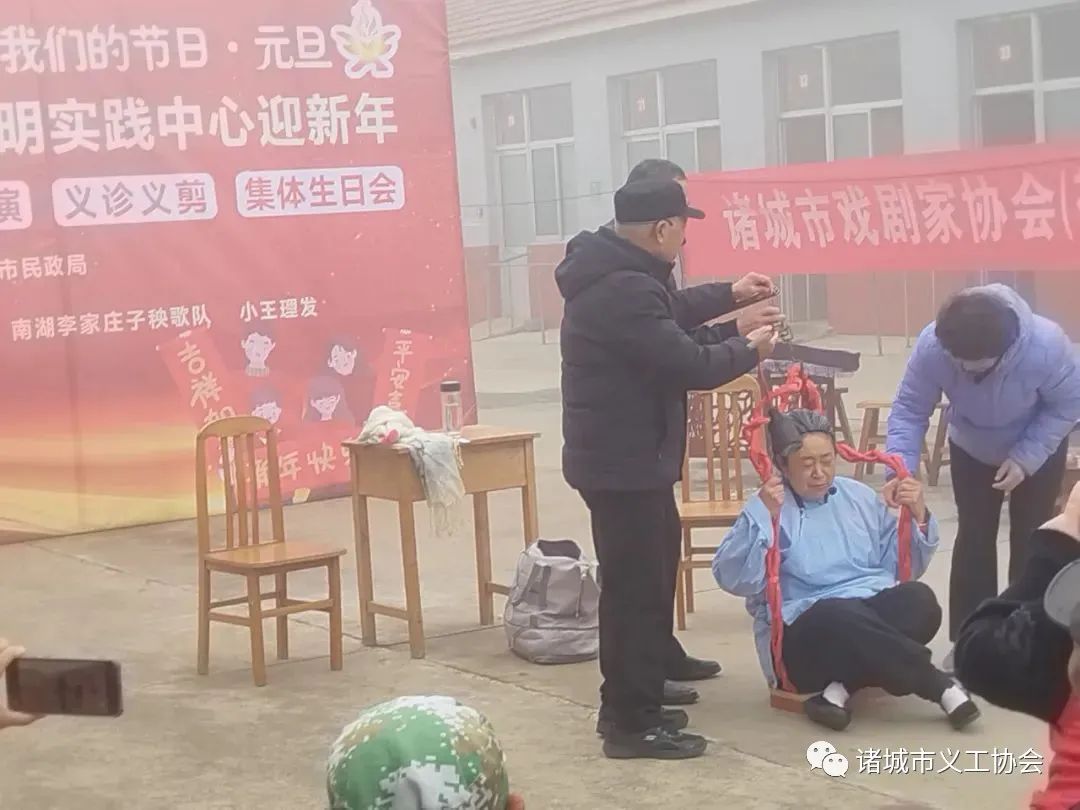 12月28日,为迎接元旦新年,诸城市义工协会在市文明办、民政局的指导下,携手戏剧家协会、南湖李家庄子秧歌队,小王理发,金旭食品共同开展了“我在新时代文明实践中心迎新年”走进慈海敬老院皇华分院活动,为这里的老人提前带来新年的祝福。