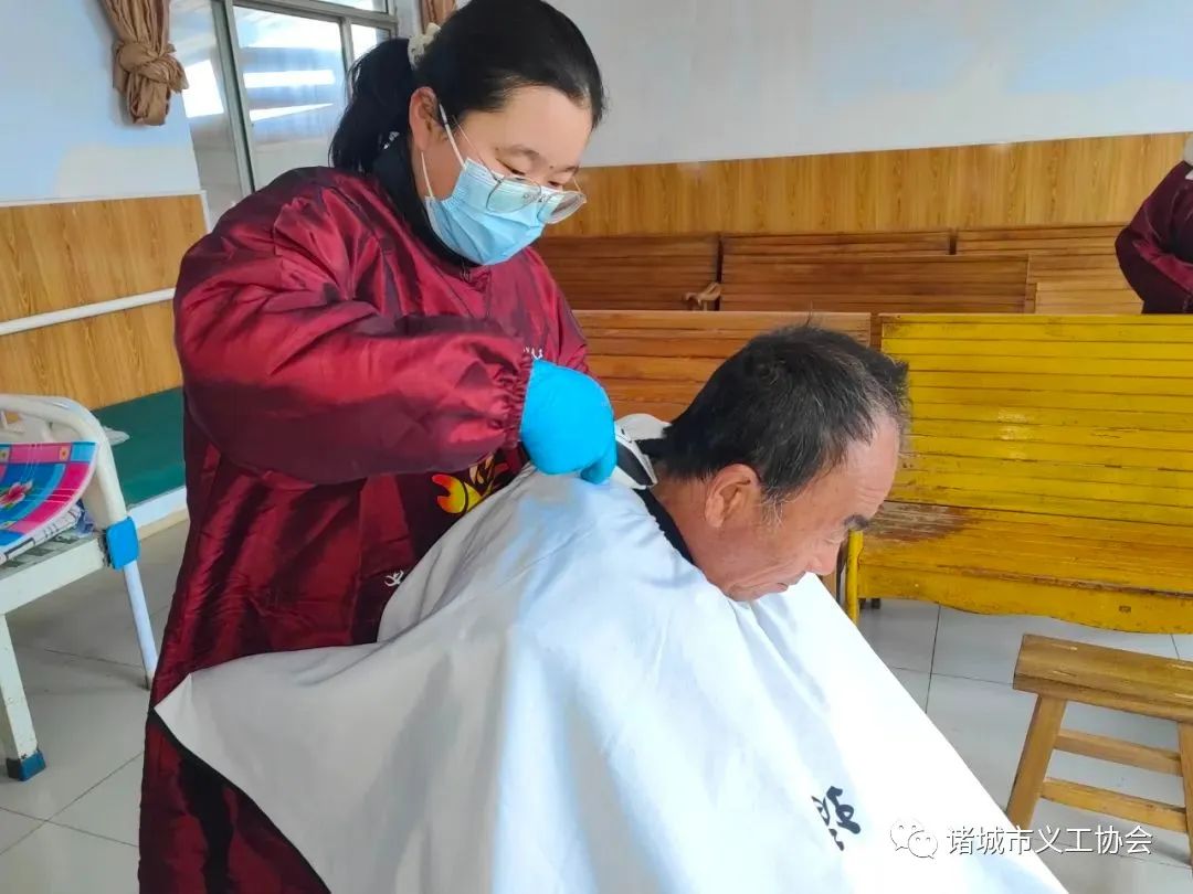 小王理发的志愿者为老人们免费理发,根据每位老人的需求修剪发型,一边理发,一边陪老人们唠家常。老人们理完发一个个精神焕发。