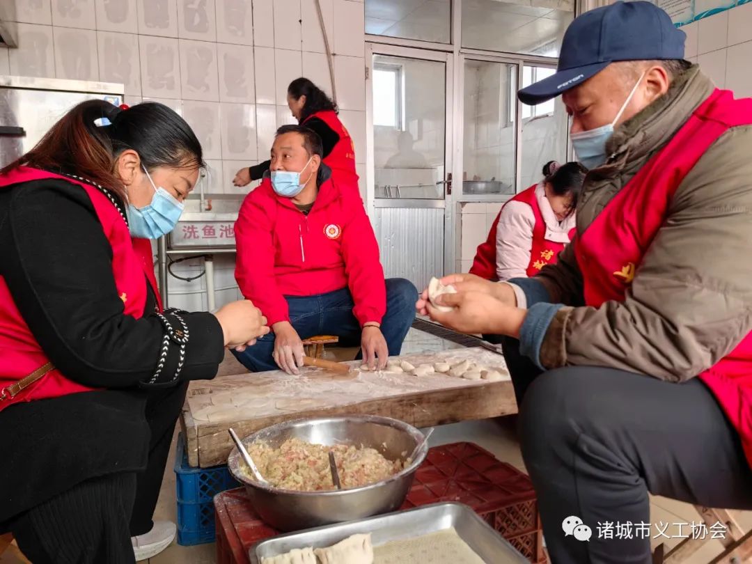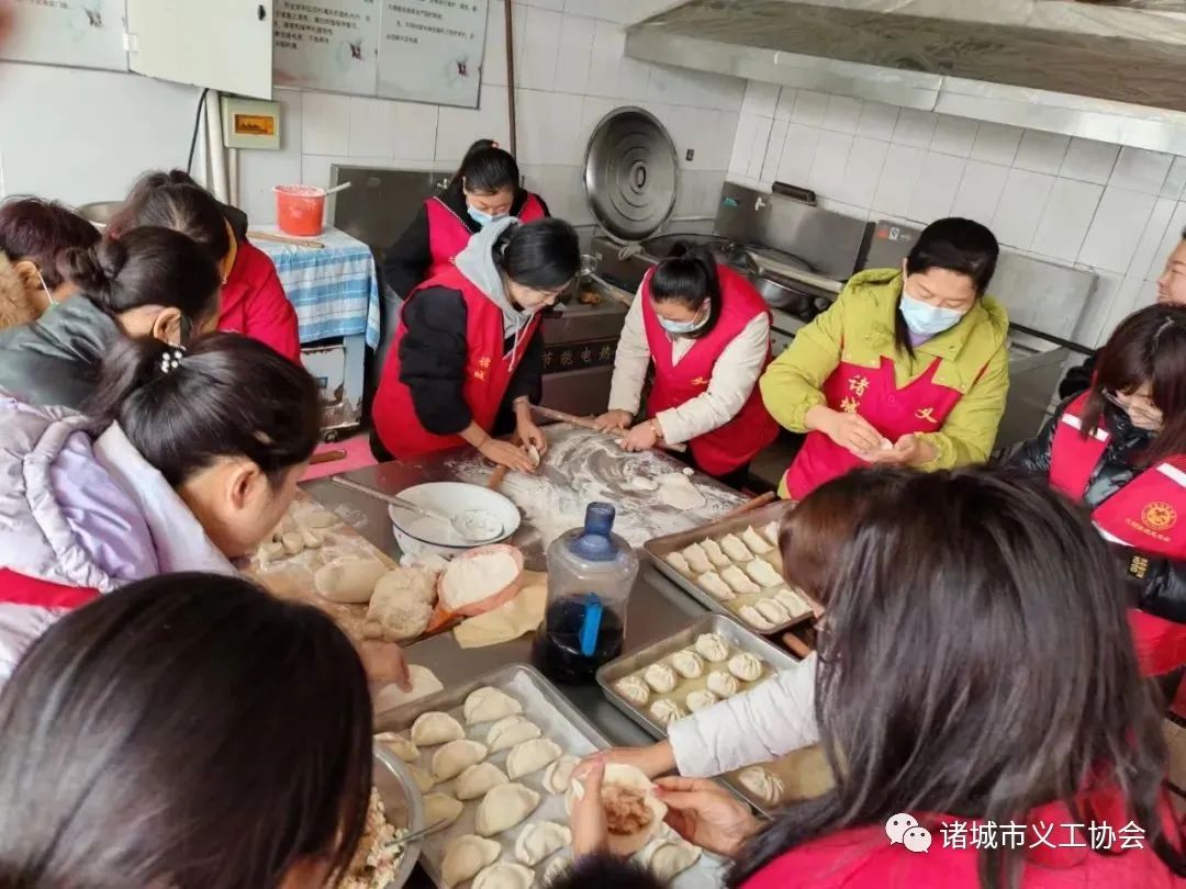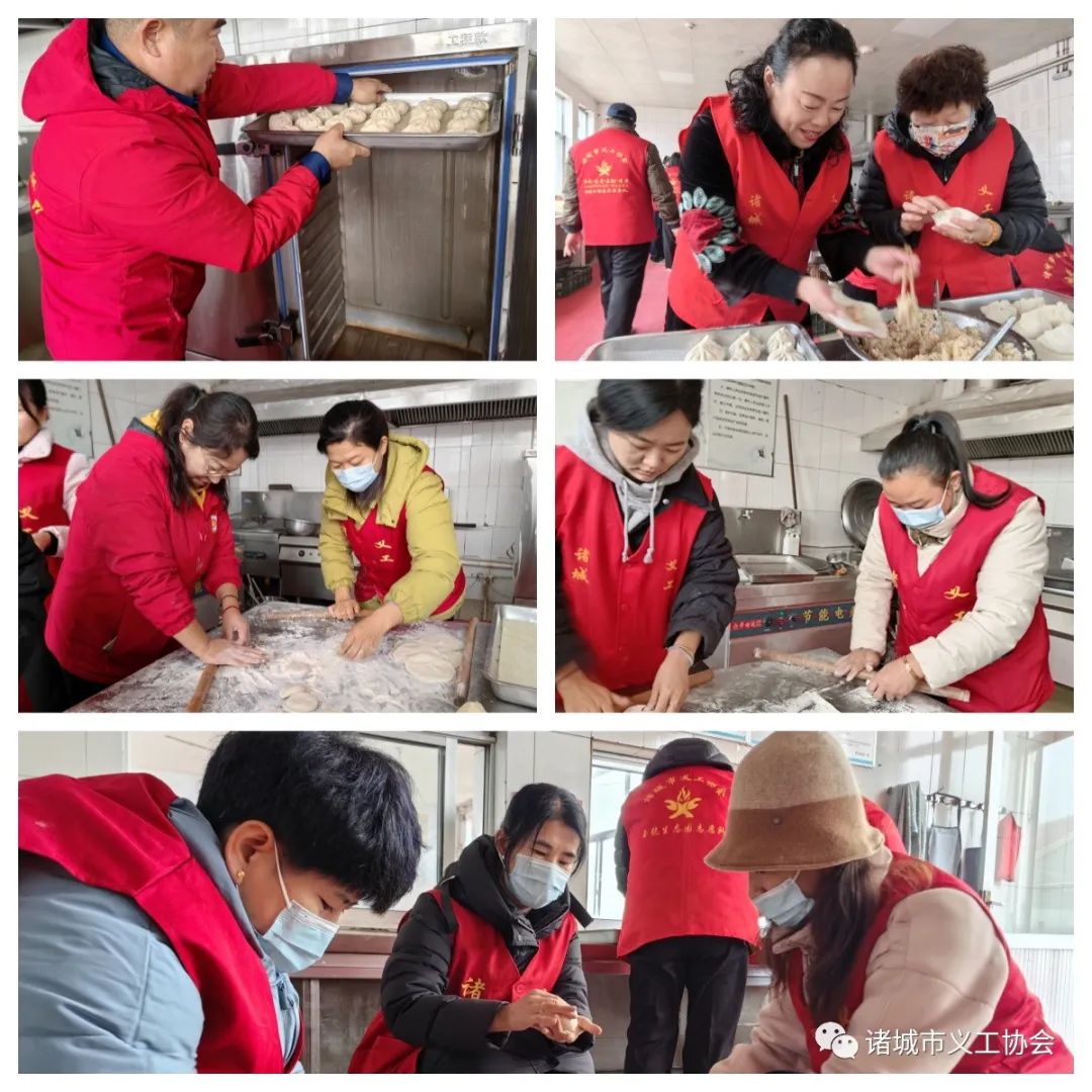 敬老院厨房里,大家分工合作,调馅、擀皮、包馅,仅一个小时就为老人们包好了300多个团圆大包子