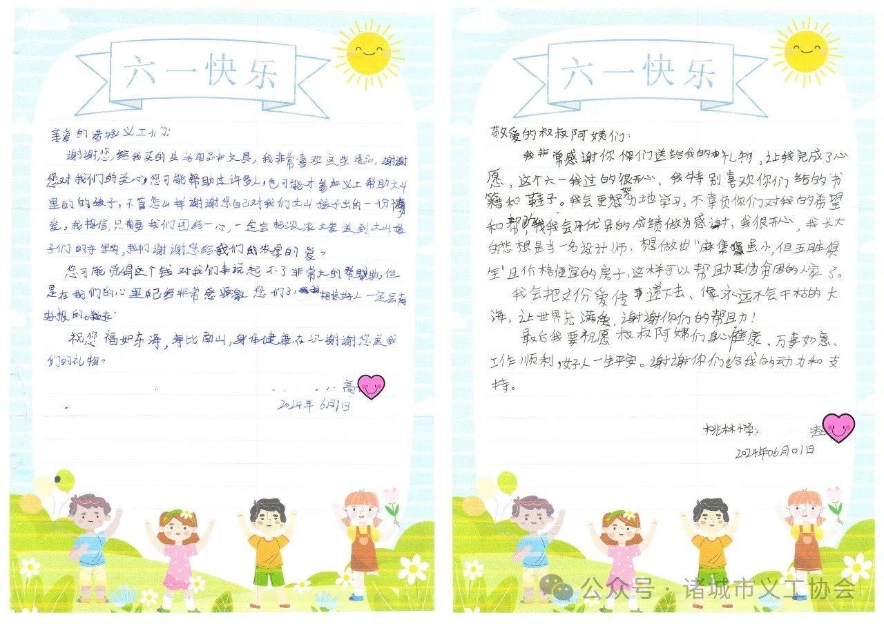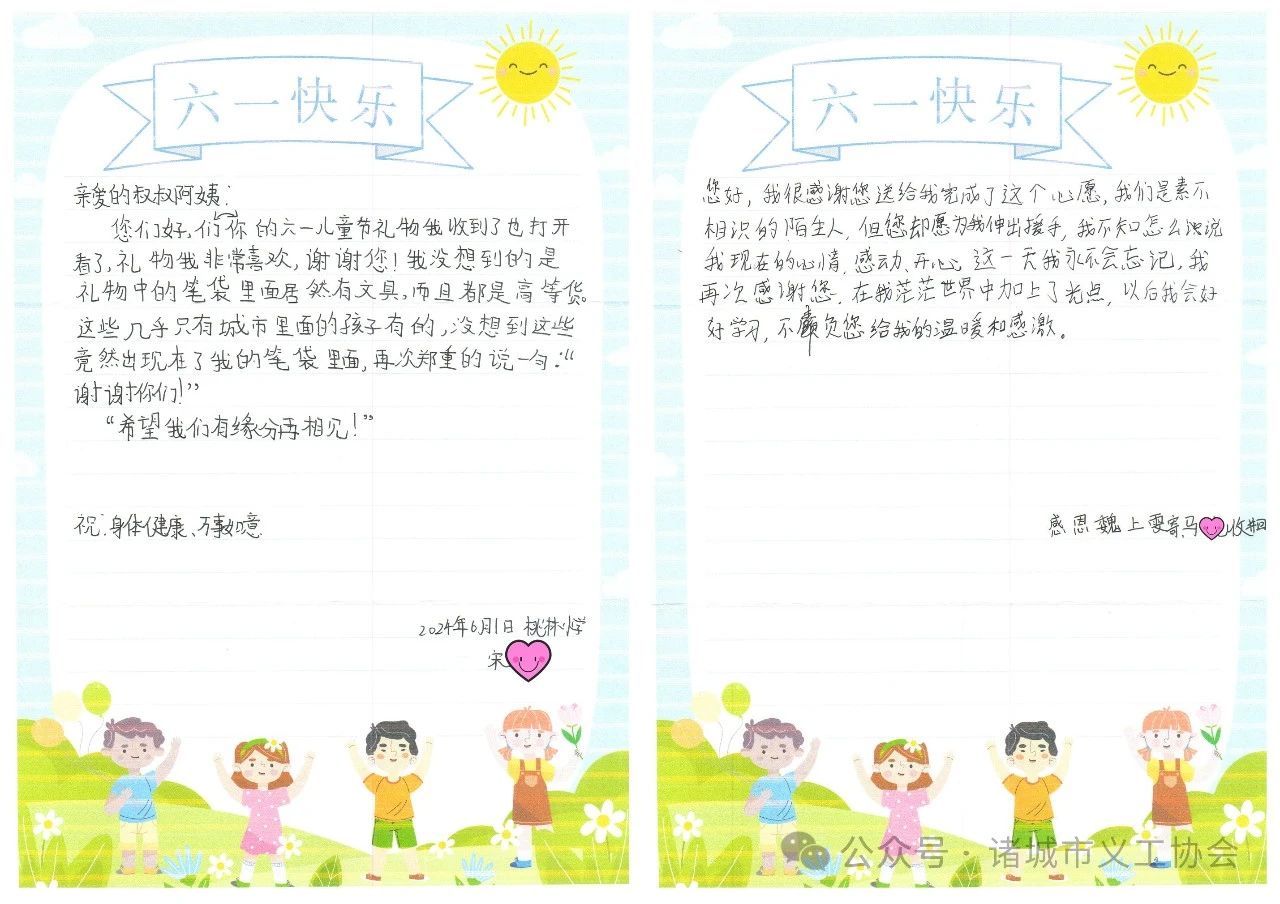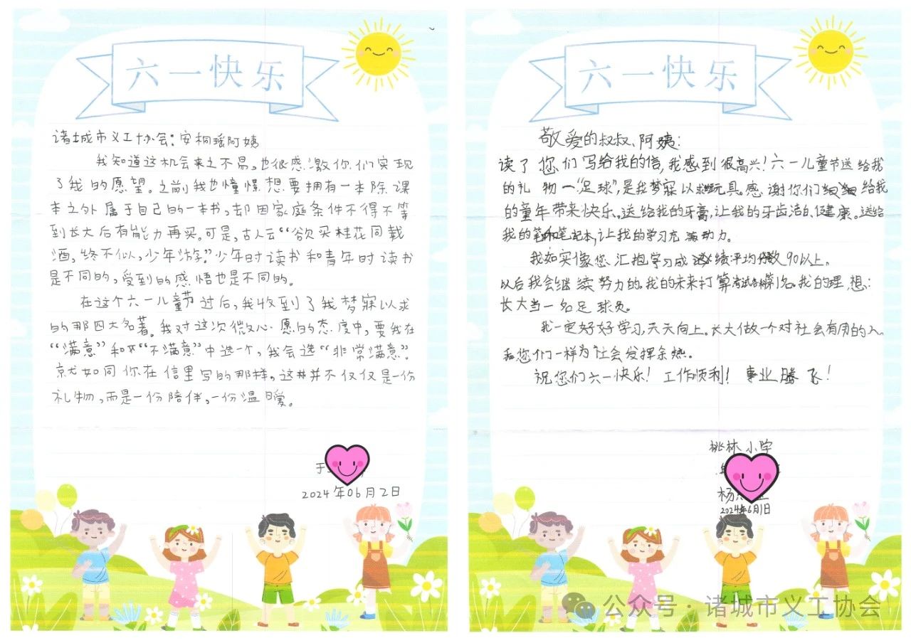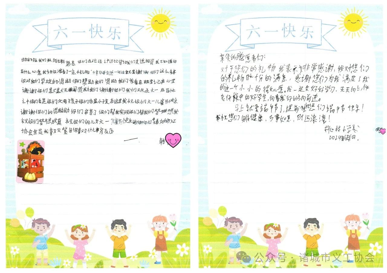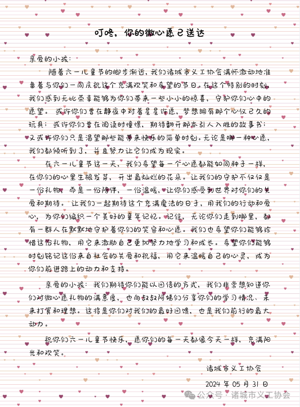 在六一儿童节前夕,诸城市义工协会精心策划了一场温馨的“点亮微心愿 · 筑梦美好童年”活动,成功助力桃林小学的30名学生圆满了各自的“微心愿”。当那一份份承载着关爱的礼物送至孩子们手中时,他们脸上绽放出天真烂漫的笑容,宛如阳光洒满大地,温暖而明亮。如今,孩子们的回礼和感谢信纷至沓来,字里行间流露出对这份爱心的深深感激。